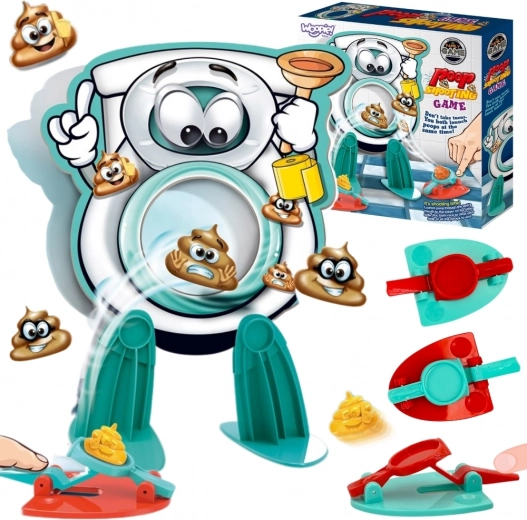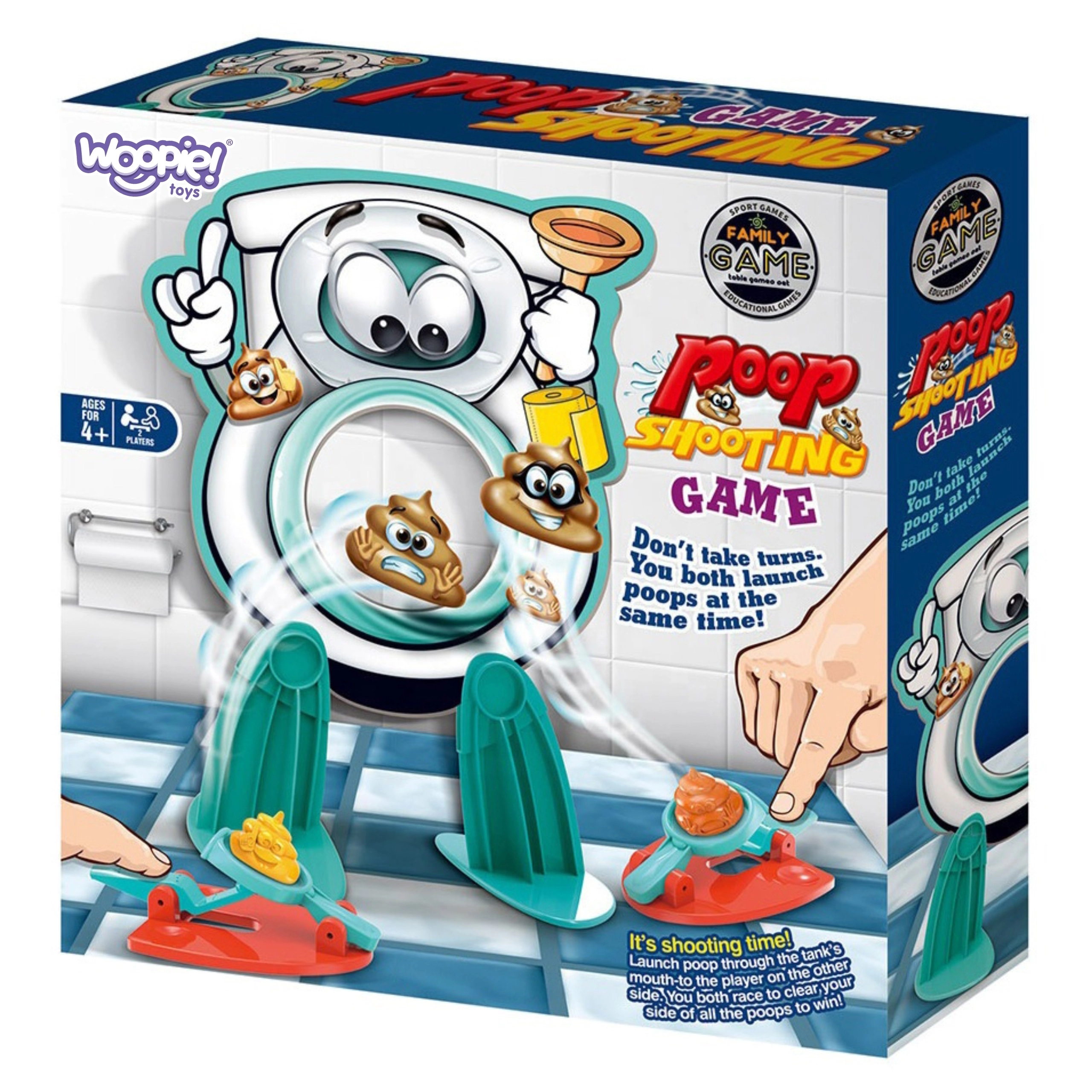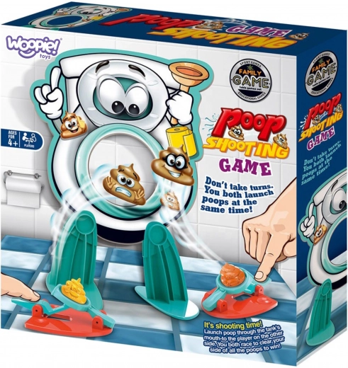 Het leuke familiespel Woopie Poepjes schieten in het toilet brengt een snelle en vrolijke wedstrijd voor twee spelers. Elke speler schiet plastic poepjes af vanuit zijn lanceerder naar een lachend toilet – wie als eerste zijn kant schoonmaakt, wint! Dankzij de lichte constructie, gladde randen en eenvoudige bediening is het ideaal voor familieavonden, kinderfeestjes en als grappig cadeau voor kinderen vanaf 4 jaar.