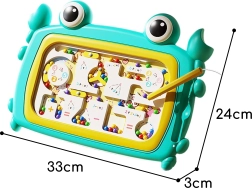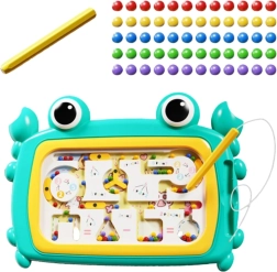 Ontdek spelenderwijs leren met het magnetische kinderbord in de vorm van een krab van het merk WOOPIE. Met de magnetische pen verplaatsen kinderen de kogeltjes door het labyrint en trainen zo hun fijne motoriek, coördinatie en basis wiskunde. Duurzame en veilige constructie, zonder batterijen, ideaal voor thuis en onderweg.