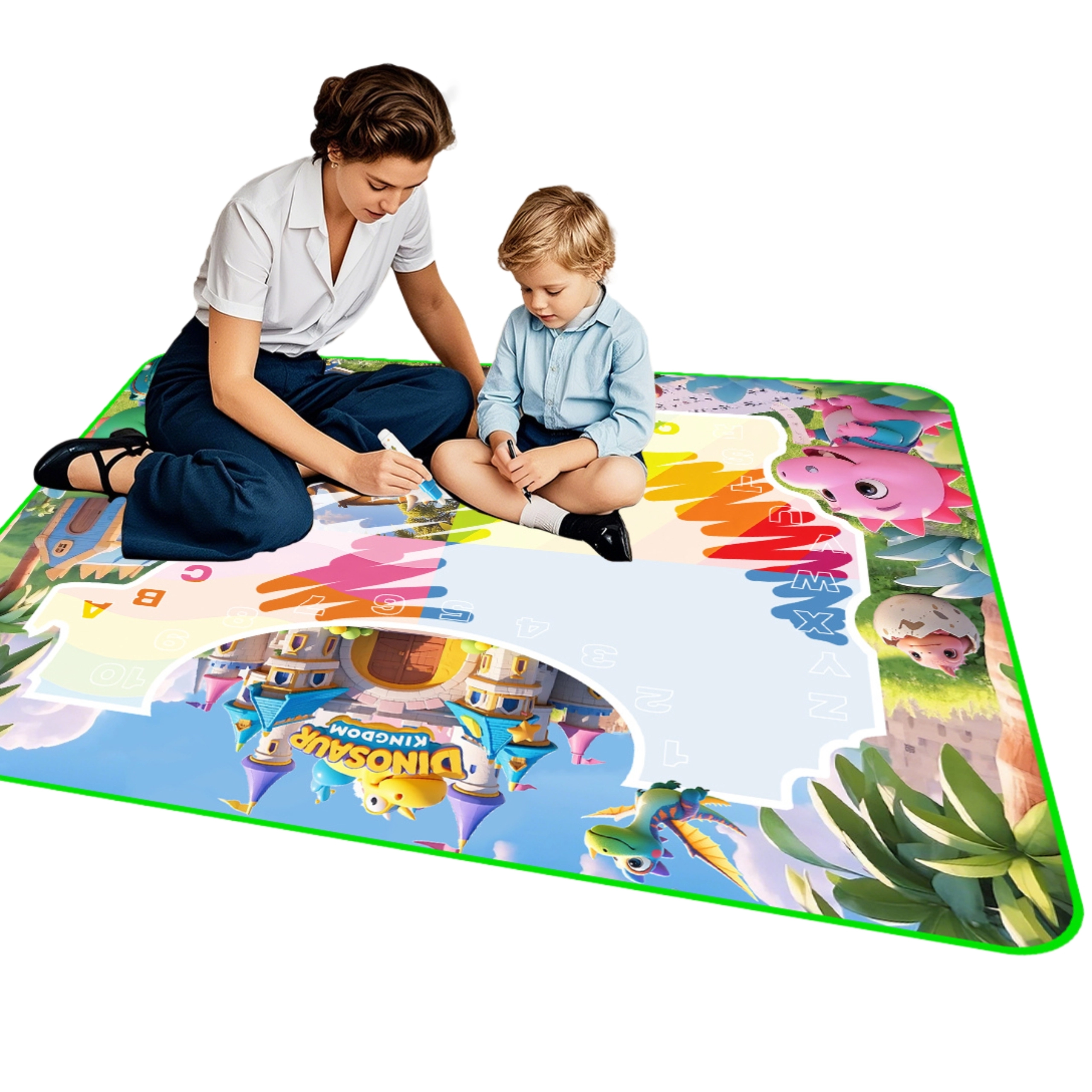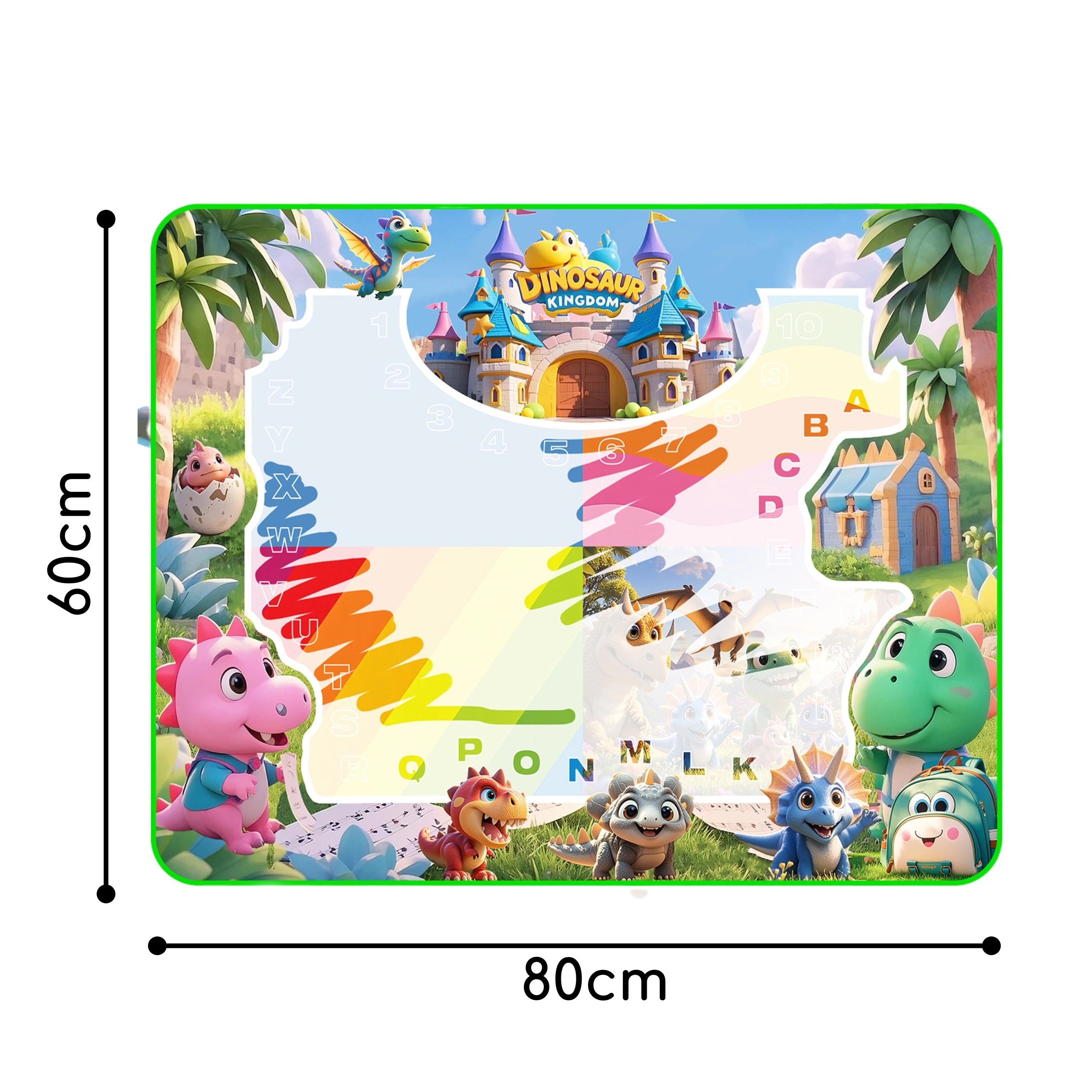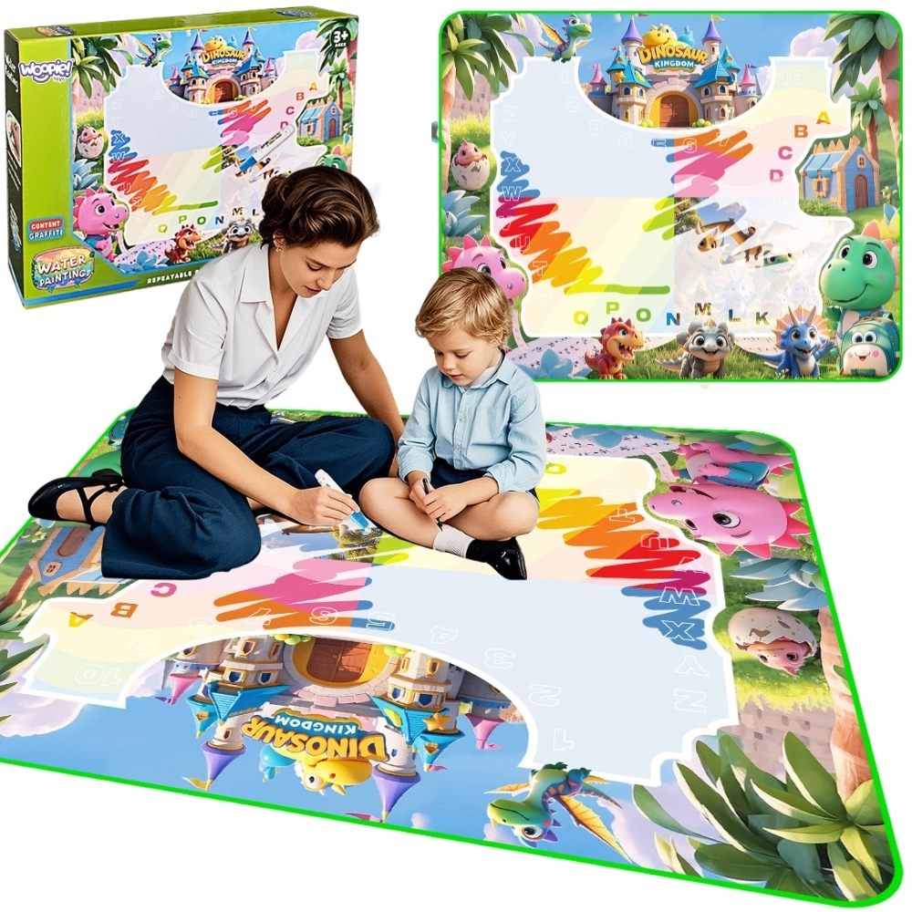 Ontdek speels tekenen zonder vlekken op kleding en meubels. Deze grote watertekenmat met dinosaurusmotief stimuleert creativiteit, verbeelding en fijne motoriek. Er wordt uitsluitend met water getekend – geen verven of stiften die de omgeving kunnen bevuilen. Na korte tijd verdwijnen de tekeningen vanzelf, zodat de mat herhaaldelijk kan worden gebruikt.