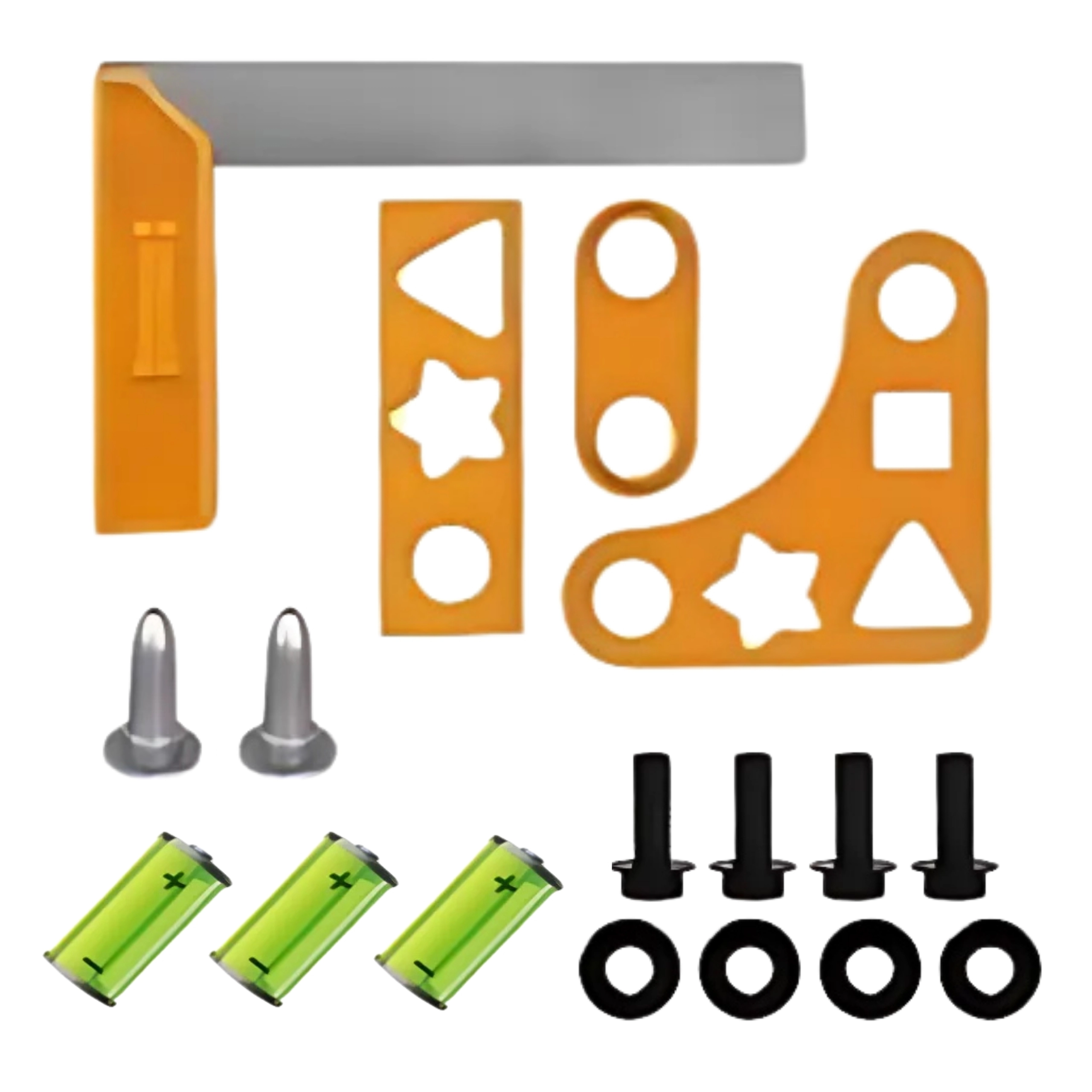 - Rijke accessoires: sleutel, schroevendraaier, winkelhaak, tang, schroeven, moeren, spijkers en plaatjes.