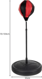 De stabiele ronde voet kan worden gevuld met water of zand voor stevige verankering. In de verpakking zit alles wat je nodig hebt: handschoenen met comfortabele sluiting, een pomp met naald om de bal op te pompen en een montagesleutel. De compacte afmetingen maken eenvoudig gebruik in de kinderkamer, woonkamer of speelruimte mogelijk.
