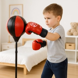 Een leuke en veilige bokssset voor kinderen die actieve beweging stimuleert, reflexen en coördinatie verbetert en helpt energie kwijt te raken. De staande punchingball op een veer keert na een stoot snel terug; de hoogte is eenvoudig instelbaar tussen 70–104 cm. Een stabiele voet voor water of zand, handschoenen in universele kindermaten en een pomp met naald zijn inbegrepen.