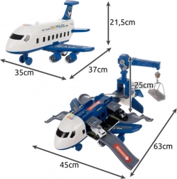 Het uitklapbare politievliegtuig brengt de actievolle wereld van de hulpdiensten samen in één speelgoed. Na openen verandert het in een gedetailleerd parkeerterrein met doorrijhellingen, garages en leuke functies. Dankzij de licht- en geluidseffecten en de achterwielaandrijving genieten kinderen van realistisch spel vol achtervolgingen en reddingsmissies.