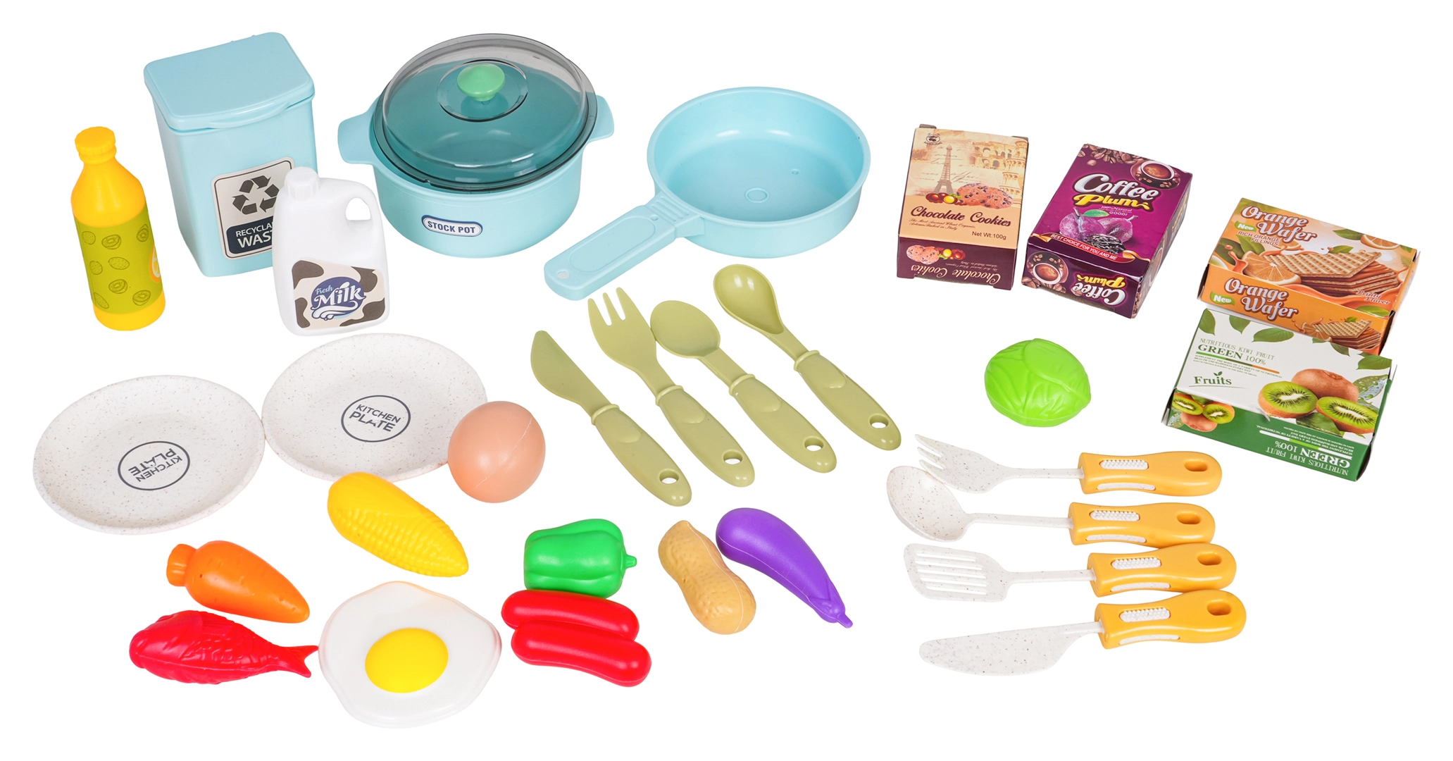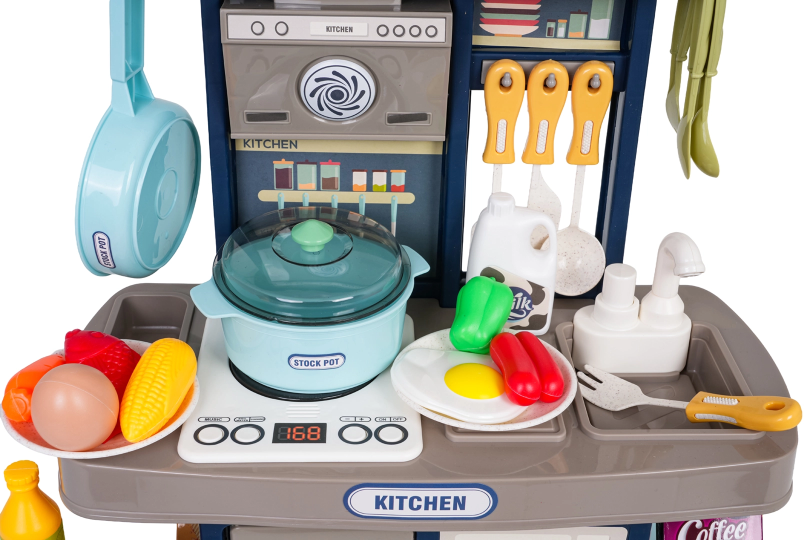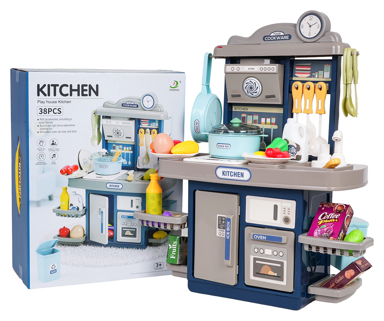 Dit kinderkeukentje maakt van elke dag een creatieve kookervaring. Het biedt een verlichte “inductie”-kookplaat met kook- en bakgeluiden en melodieën met volumeregeling, een openende oven en koelkast. Dankzij de werkende kraan met pompje leren kinderen basisskills in de keuken veilig en spelenderwijs.
