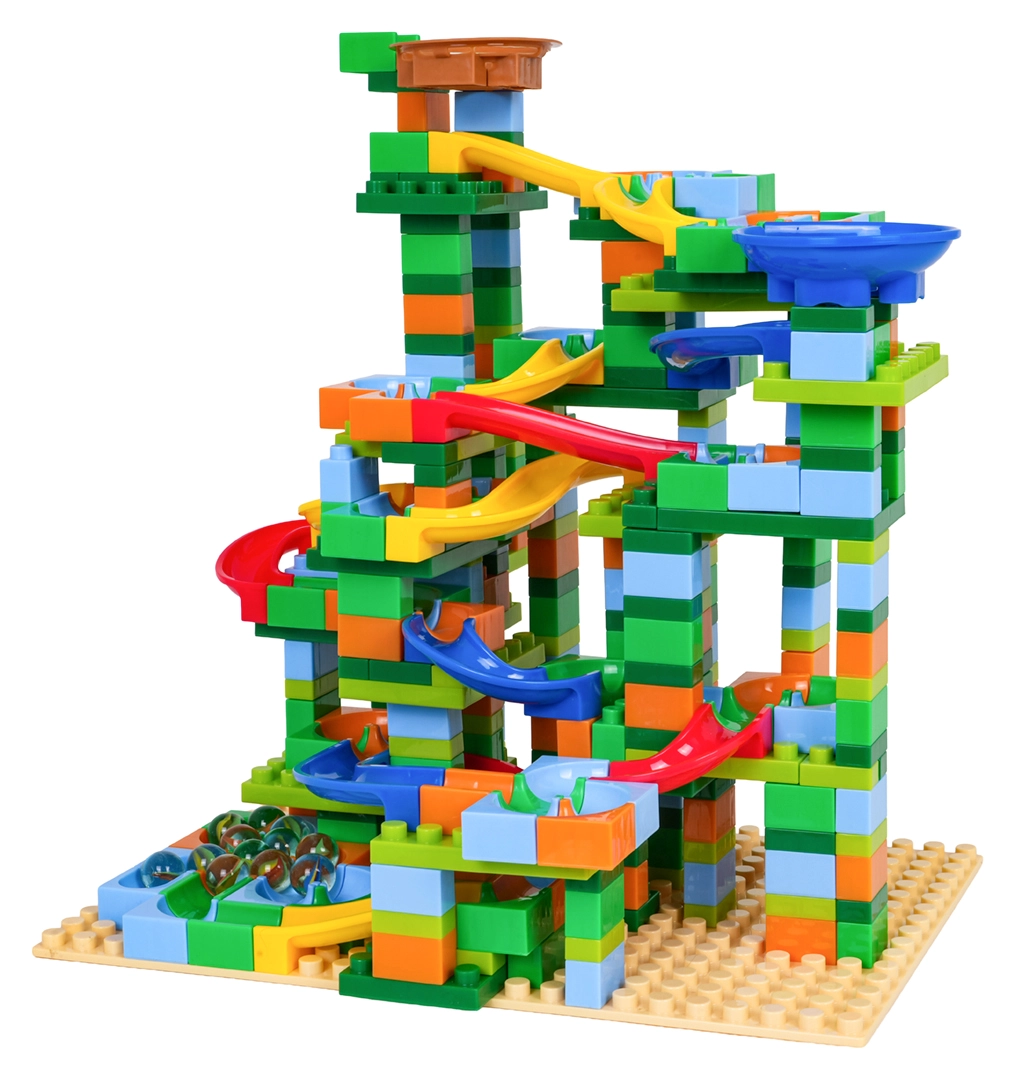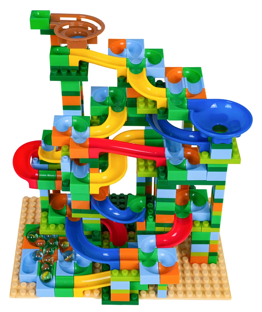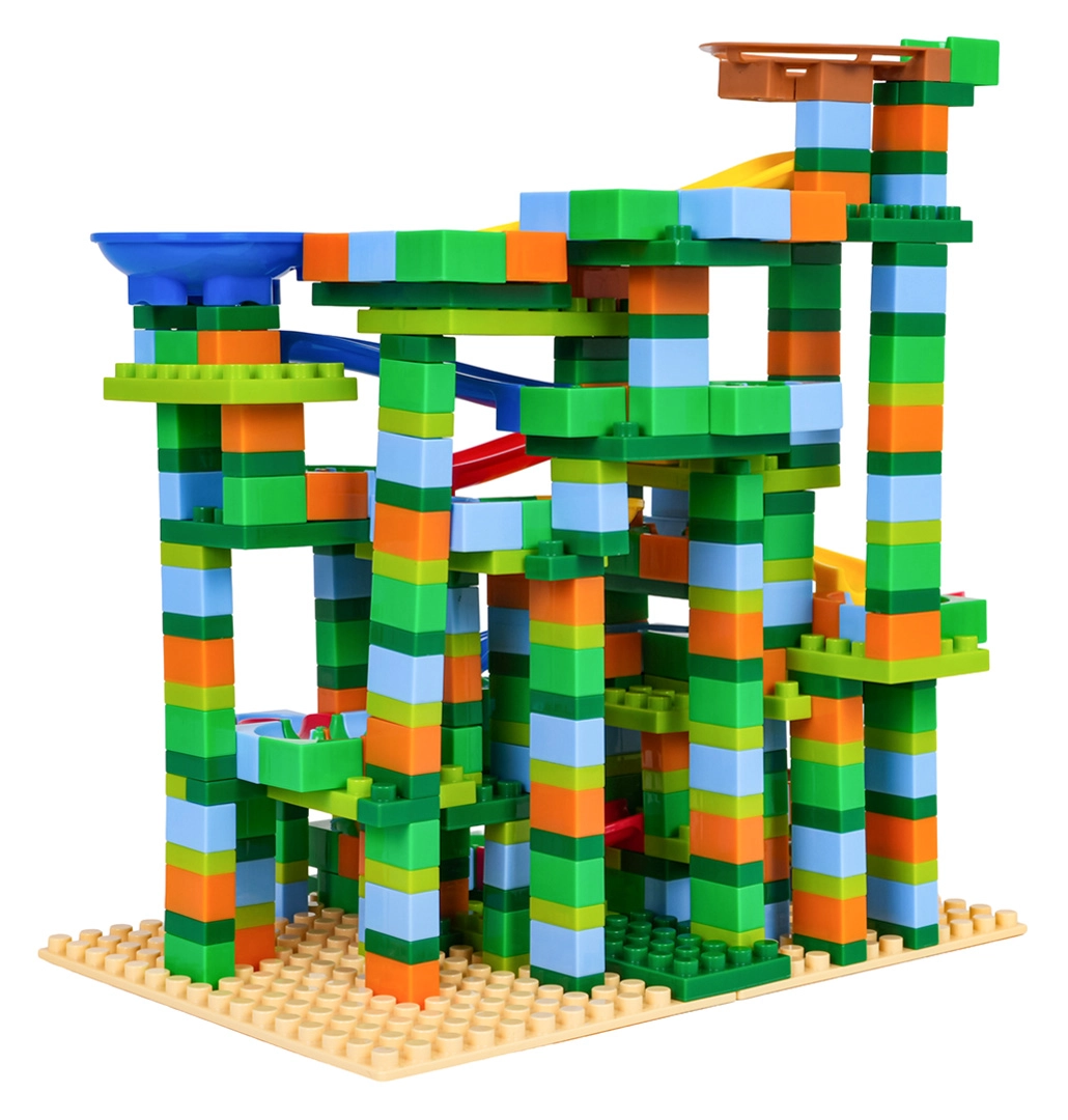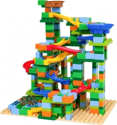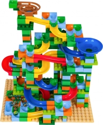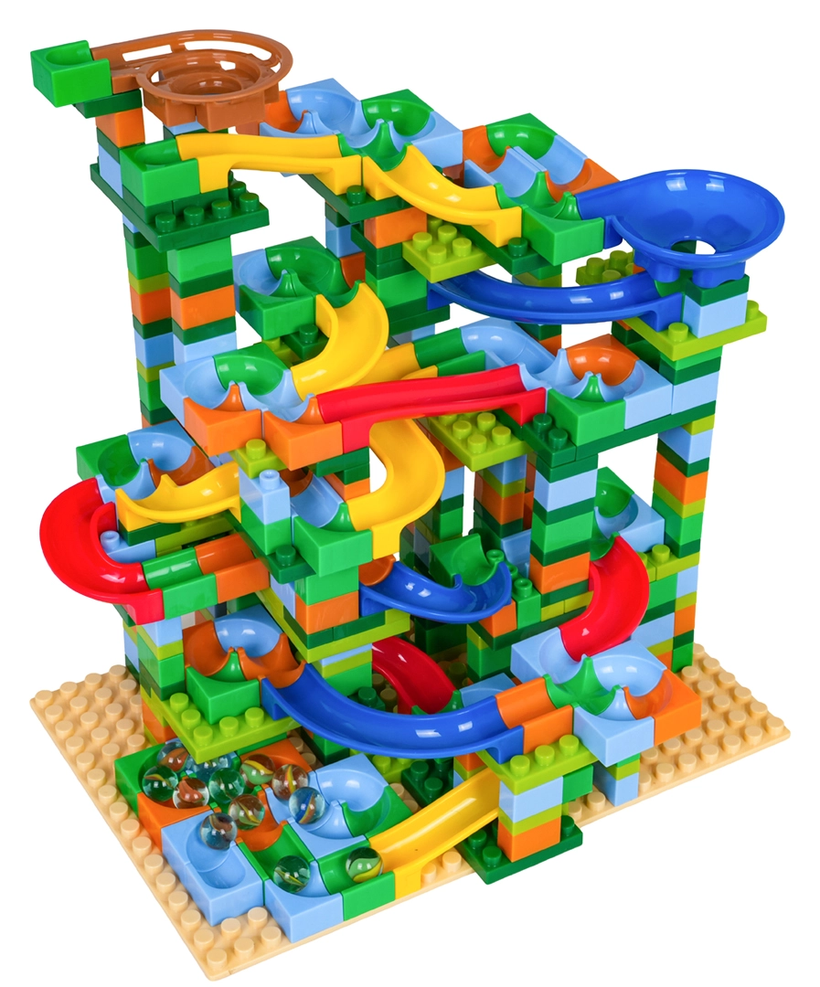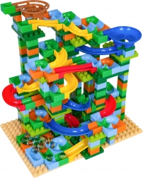 Bouw je eigen kleurrijke knikkerbaan en kijk hoe de knikkers door bochten, trechters en afdalingen rollen. Met een uitgebreide set van 402 elementen maak je eindeloos veel varianten en trainen kinderen spelenderwijs oog-handcoördinatie en logisch denken.