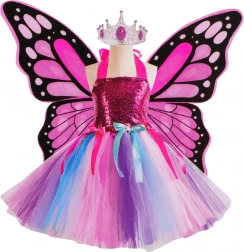 Dit kleurrijke kostuum verandert ieder kind in een echte vlinderfee. Het valt op door rijke kleuren, het regenboogeffect van de rok en indrukwekkende vleugels met LED-lichtjes en geluidseffecten. Een uitstekende keuze voor carnaval, schooloptredens, fotosessies en een speelse middag.