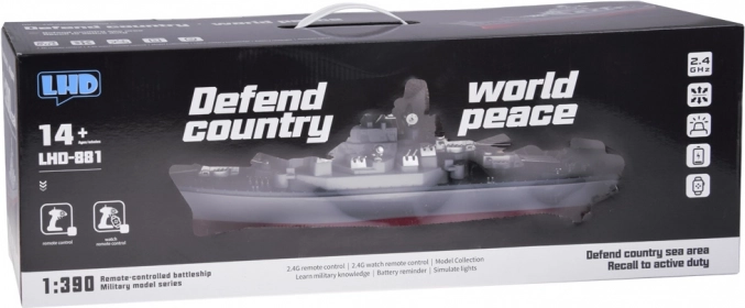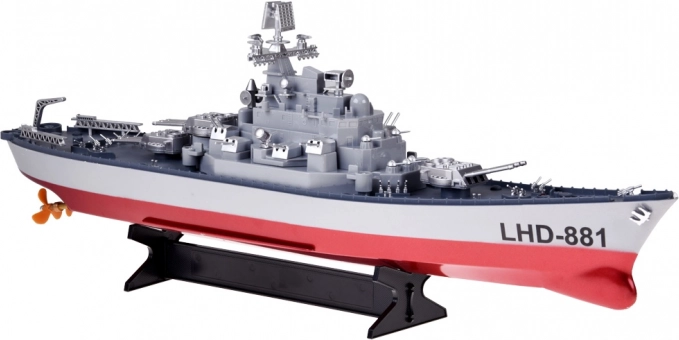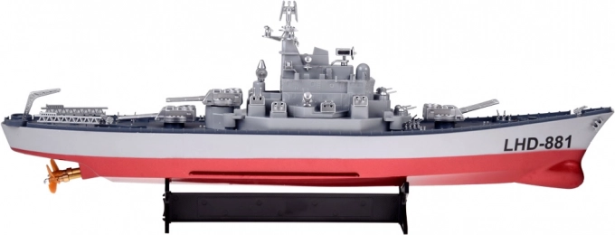 Ontdek een realistisch radiografisch model – het slagschip LHD-881 op schaal 1:390 met een lengte van 60 cm. Biedt een snelheid tot 10 km/u, een besturingsbereik van ca. 100 m, soepele manoeuvres voor/achterwaarts en links/rechts, en stabiele 2,4 GHz-besturing. In de set: 7,4 V-accu, USB-opladen, zender en displaystandaard – ideaal om mee te varen en als opvallend showstuk.