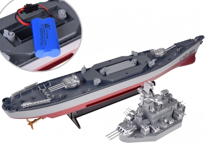 De RC-slagschip LHD-881 overtuigt met gedetailleerde afwerking van dek en opbouwen, een dubbele schroefaandrijving voor betrouwbare grip en realistische elementen. Dankzij de intuïtieve bediening op 2,4 GHz kun je comfortabel varen, zelfs met meerdere modellen in de buurt zonder storing. Droog het model na het varen af en plaats het op de meegeleverde standaard.