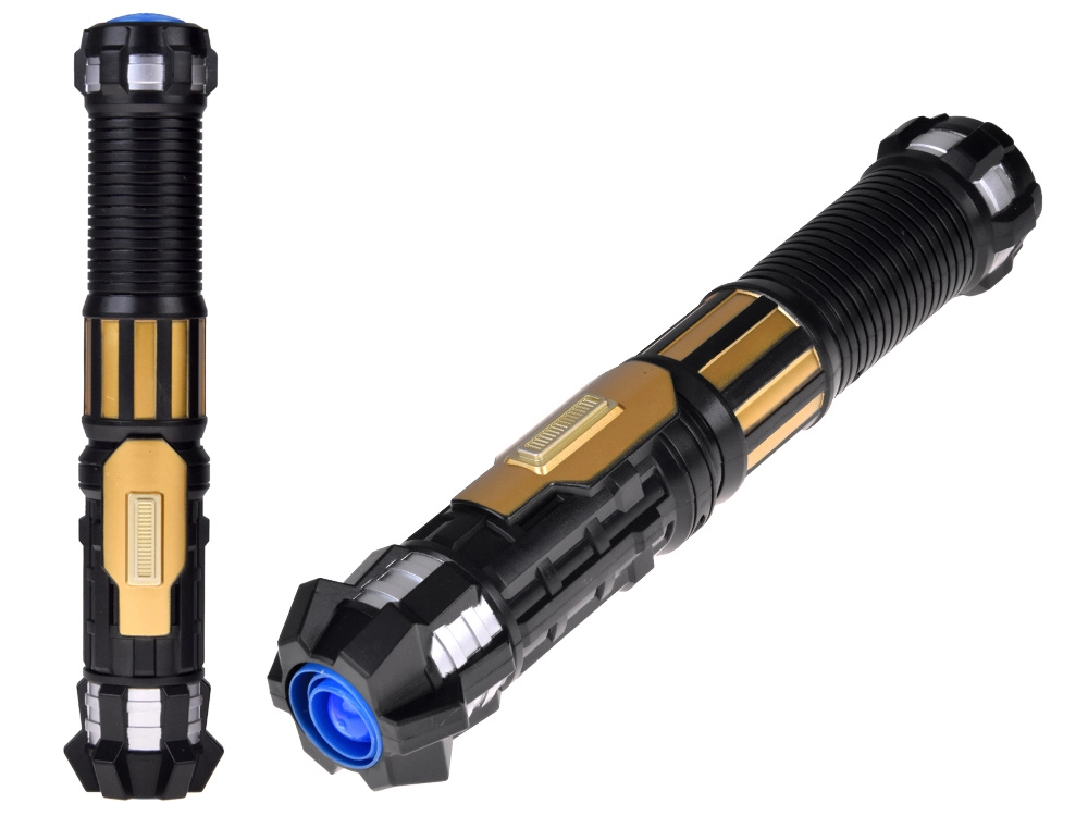 Met één druk op de knop laat je de kling oplichten en activeer je realistische geluiden. Bij een volgende druk dimt het licht zachtjes.