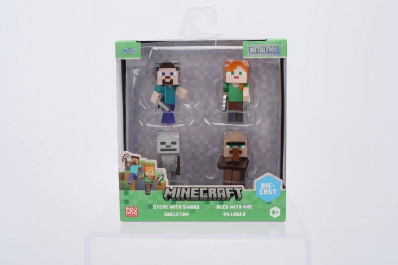 In de verpakking vind je vier populaire personages: Steve met zwaard, Alex met bijl, Skeleton en Villager. Dankzij de compacte hoogte van 6 cm passen de figuurtjes perfect op je bureau, plank of in een vitrinekast.