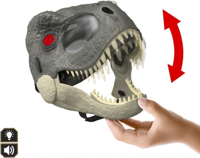 Verander in je favoriete dinosaurus met dit realistische T-rex-masker! Het biedt LED-knipperende ogen, authentieke gromgeluiden en drie niveaus van felheid afhankelijk van hoe ver de bek opent. Dankzij de verstelbare band en openingen voor ogen en mond is het masker comfortabel en veilig voor kinderspel en kostuums.