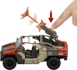 Terreinwagen met afneembare toren en werper, velociraptor-figuur, figuurtje van Martin Krebs, munitie (pijl/net)