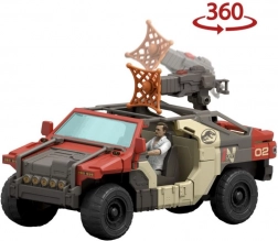 Jurassic World terreinwagen met bestuurder en velociraptor