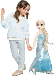 Ontdek de magie van Frozen met de extra grote Elsa-pop van 86 cm hoog, die betovert met een gedetailleerde jurk met sneeuwvlokken, een lange blonde vlecht en verfijnde gelaatstrekken. Dankzij de volledig beweegbare constructie beweegt ze soepel, zit ze gemakkelijk, poseert ze moeiteloos en vergezelt ze kinderen bij elk avontuur.