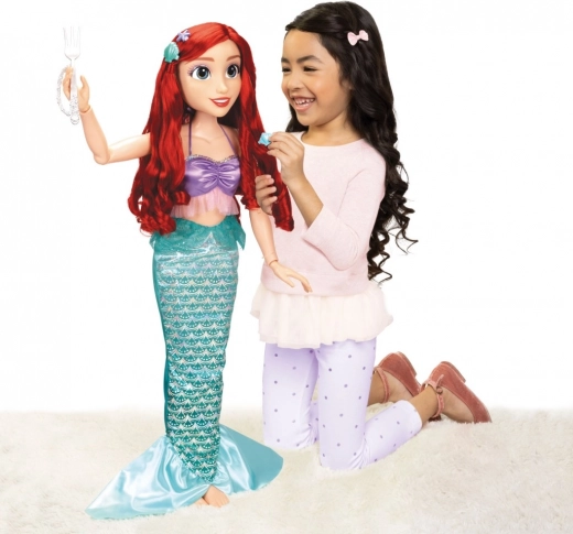 Ontdek de magie van de onderwaterwereld met de Disney Prinses Ariel pop van 80 cm. Extra groot, beweeglijk en klaar voor interactief spel, met lang rood haar om te kammen, een glinsterende zeemeerminnenstaart en een stijlvolle top. Een geweldige keuze voor kleine prinsessen die van creatief spelen en stylen houden.