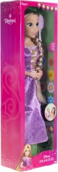 Ontdek de magie van het sprookje met de extra grote Rapunzel-pop uit de Disney Princess-collectie. Ze is ongeveer 80 cm groot, kan zelfstandig staan, heeft beweeglijke gewrichten en extreem lang blond haar dat ideaal is om te kammen en te stylen. Perfect voor creatief spel en als betoverend cadeau voor kleine prinsessen.