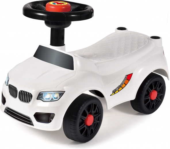 Lichte en stabiele witte loopfiets zonder rugleuning voor de allerkleinsten. Biedt eenvoudige bediening, een stevige constructie en compacte afmetingen 50 × 21,5 × 33 cm – ideaal voor thuis en buiten.