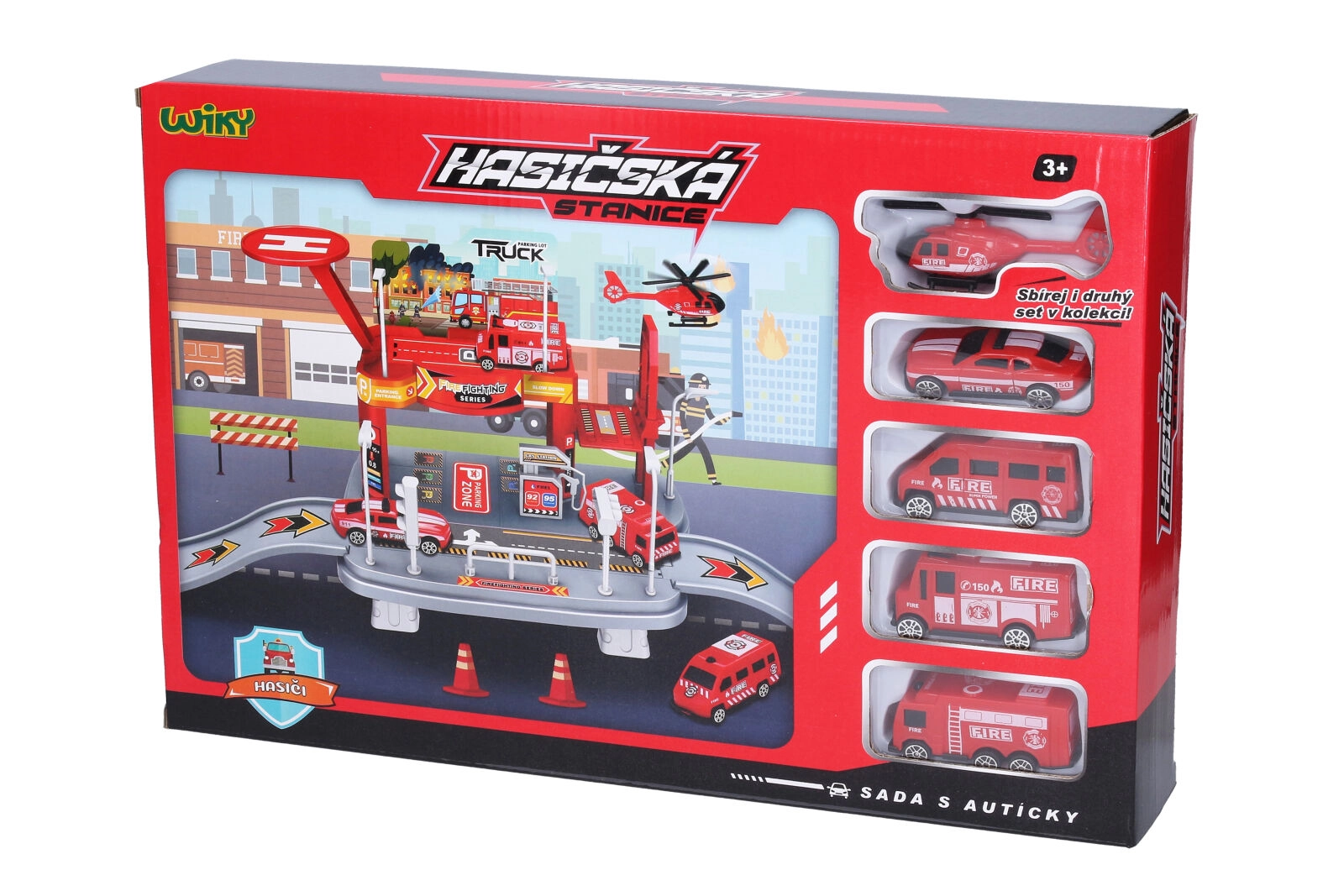Grote brandweerkazerne voor kleine hulpverleners met alles voor actievol speelplezier: 4 brandweerauto’s, helikopter met helihaven, handmatige lift, tankstation en verkeersborden. Dankzij de compacte afmetingen van 65 × 19 × 24,5 cm past hij perfect in de kinderkamer en de Tsjechische verpakking met afbeeldingenhandleiding zorgt voor snelle montage.