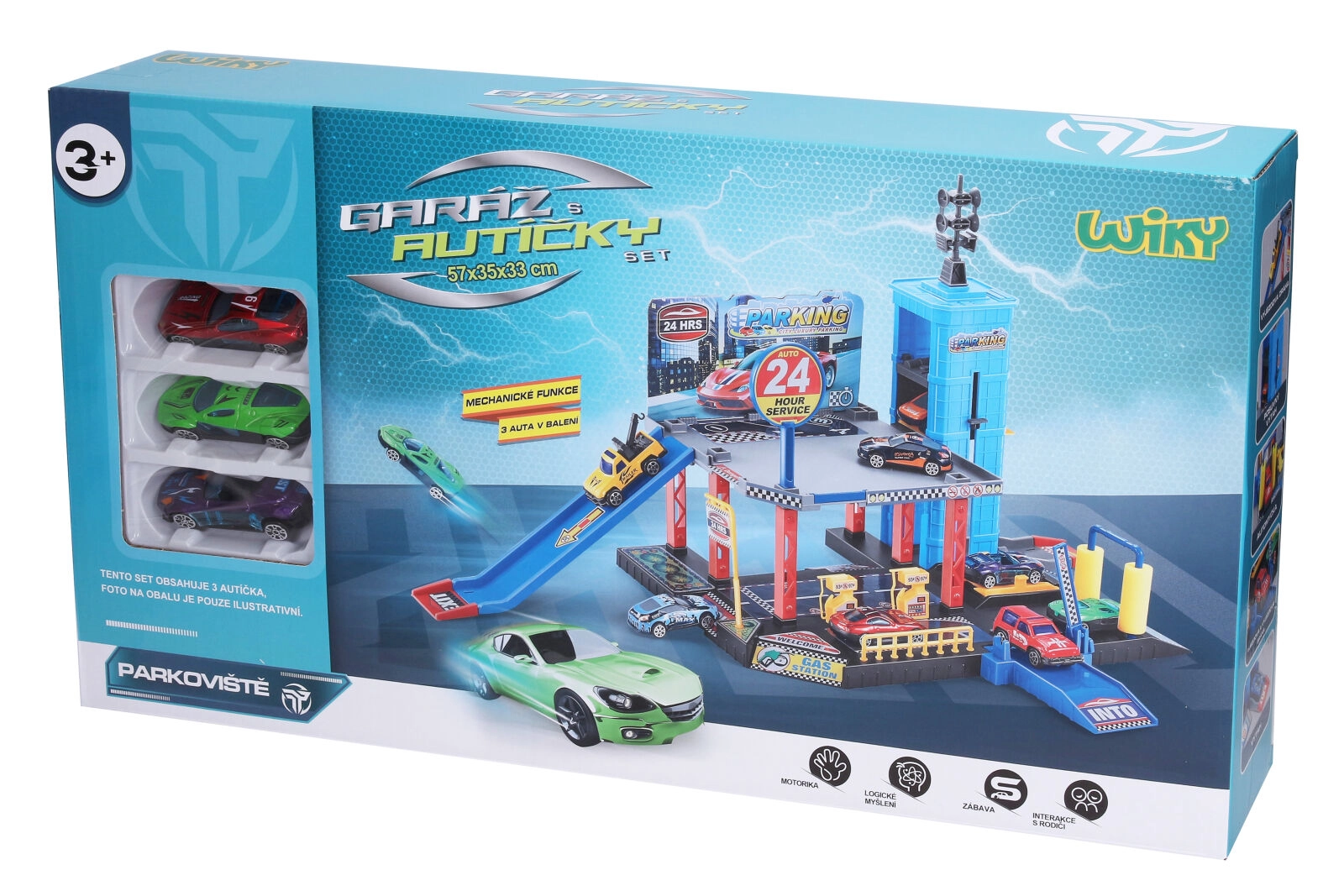 De stabiele constructie en metalen autootjes zorgen voor een lange levensduur en uren speelplezier. De afmetingen van de gemonteerde garage 57 × 35 × 33 cm bieden genoeg ruimte om thuis of op school te spelen.