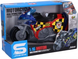 Deze politiemotor van 25 cm zorgt voor veel plezier en realistische details. Dankzij de licht- en geluidseffecten verandert het spel in een actiescène, terwijl de vrije wielen zorgen voor soepel rijden op vlakke oppervlakken. Het activeren van de effecten is eenvoudig – druk gewoon op de knop aan de bovenkant van de tank.