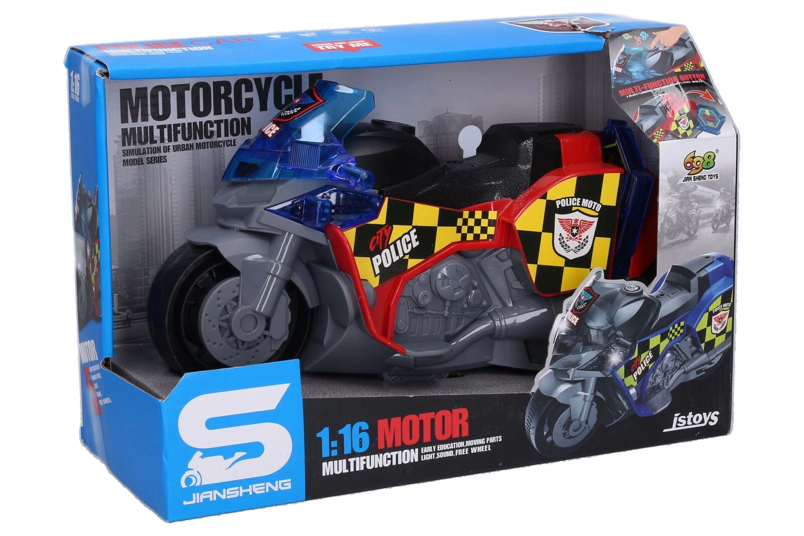Praktische extra’s, zoals de bagageruimte aan de rechterzijde en het uitklapbare STOP-bord aan de linkerzijde, stimuleren creatief en realistisch spel. Batterijen 3× AG13 zijn inbegrepen, zodat de motor direct na het uitpakken klaar is voor gebruik.