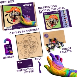 Ontdek creatieve ontspanning voor kinderen en volwassenen met de set schilderen met klei op nummer met het schattige motief van een buldog. Het voltooide schilderij van 29 × 29 cm is perfect als decoratie of origineel cadeau. In de verpakking vind je alles wat je nodig hebt – lijst, canvas, stapsgewijze afbeeldinghandleiding, modelleringstool en 14 stuks gekleurde vormklei-mengsels.