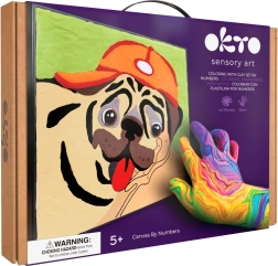 Deze creatieve set van OKTO is ideaal voor iedereen die van knutselen houdt en een eigen decoratie wil maken zonder ingewikkeld te schilderen met penselen. Werken op nummer is eenvoudig en ontspannend – breng simpelweg de gekleurde modelleerklei aan op de gemarkeerde vakken en zie hoe een levendig portret van een buldog ontstaat.