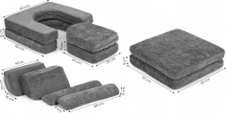 Deze grote modulaire bank van ECOTOYS biedt een perfect gebalanceerde combinatie van comfort, plezier en functionaliteit. Tien verschillend gevormde kussens maken het mogelijk om sofa’s, ligplekken en speelforten te bouwen, zodat kinderen kunnen uitrusten én creëren. Het zachte maar duurzame schuim geeft steun en veiligheid tijdens het spelen, terwijl de chenille hoes aangenaam aanvoelt en bestand is tegen dagelijks gebruik.