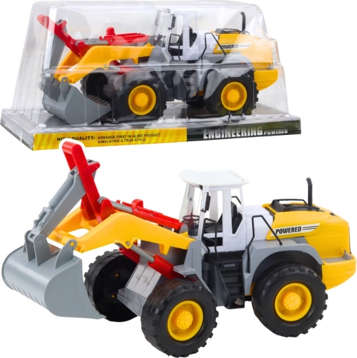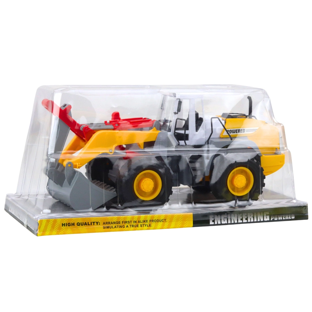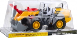 Een realistische bouwlader–graafmachine van hoogwaardig kunststof die elke kleine bouwer zal verrassen. Dankzij de inertie-aandrijving en het beweegbare middenscharnier is hij gemakkelijk te bedienen; de voorste laadschop en de werkende zuiger maken het scheppen en heffen van materiaal mogelijk. De duurzame constructie en het gedetailleerde ontwerp zorgen voor langdurig en veilig speelplezier thuis en in de tuin.