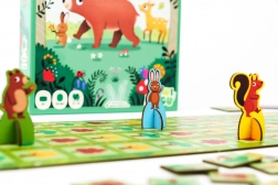 Bosraces is een vlot kinderspel waarin schattige dieren proberen als eerste door het bos de finish te bereiken. In plaats van met een dobbelsteen te gooien, trekken alle spelers tegelijk fiches uit een zak – die bepalen op welk vakje iedereen vooruitgaat. Af en toe verschijnt er een voedselfiche en kunnen de racers de snack niet weerstaan, waardoor de race aangenaam vertraagt en er een verrassingsmoment ontstaat.