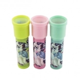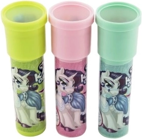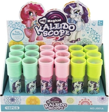 De caleidoscoop is een tijdloos stuk speelgoed dat, wanneer je tegen het licht inkijkt, met behulp van spiegels en gekleurde deeltjes unieke en steeds veranderende patronen creëert. Het eenhoornmotief zal alle kleine dromers en liefhebbers van magische werelden blij maken.