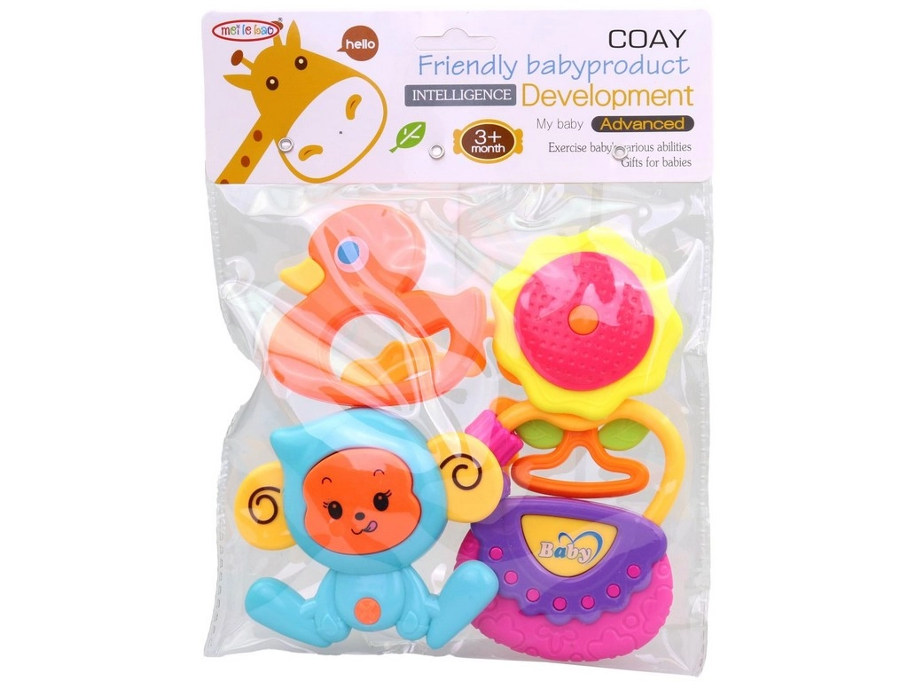 Een kleurrijke set rammelaars voor de allerkleinsten biedt zowel plezier als zintuiglijke ontwikkeling. Bevat 5 stuks lichte rammelaars van veilig plastic, geschikt voor kinderen vanaf 3 maanden. De ideale afmeting van 8,5 × 10 cm past in kleine kinderhandjes en ondersteunt de fijne motoriek en het auditieve waarnemen.