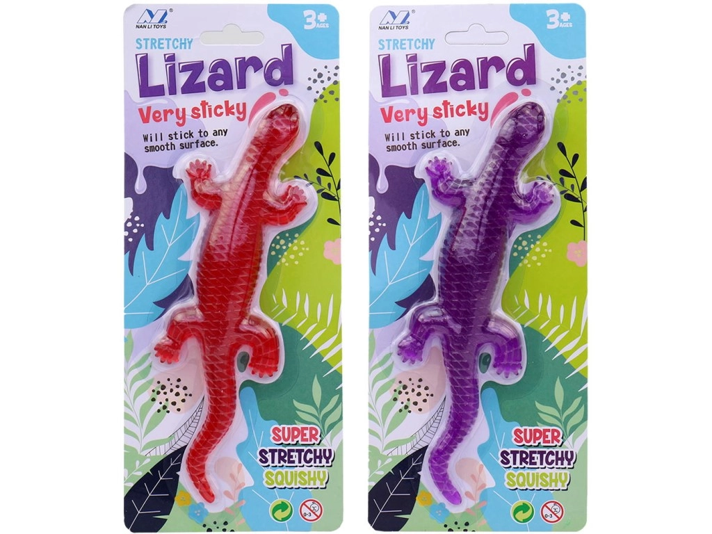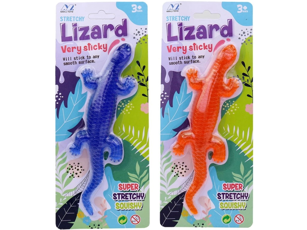 Leuke kleverige hagedis met een formaat van 19,5 × 6 cm voor kinderen vanaf 3 jaar. Het zachte kunststof materiaal hecht gemakkelijk aan gladde oppervlakken en zorgt voor uren speelplezier thuis en onderweg. Geleverd in een blister.