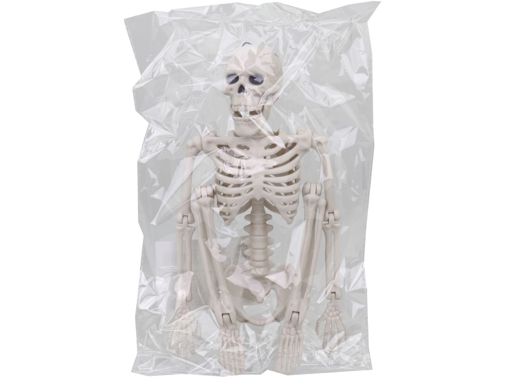 Een realistisch plastic skeletfiguur dat zowel kleine als grote liefhebbers van griezelige speelgoed zal verrassen. Biedt een indrukwekkende uitstraling, een veilig ontwerp voor kinderen vanaf 3 jaar en een praktische verpakking in een zakje.
