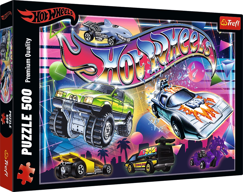 De TREFL Hot Wheels jaren 80-puzzel is een ideale keuze voor liefhebbers van auto’s en retrodesign. Dankzij de 500 nauwkeurig uitgesneden stukjes wacht je een prettige uitdaging en een kwalitatief afgewerkt beeld met iconische HOT WHEELS-motieven.