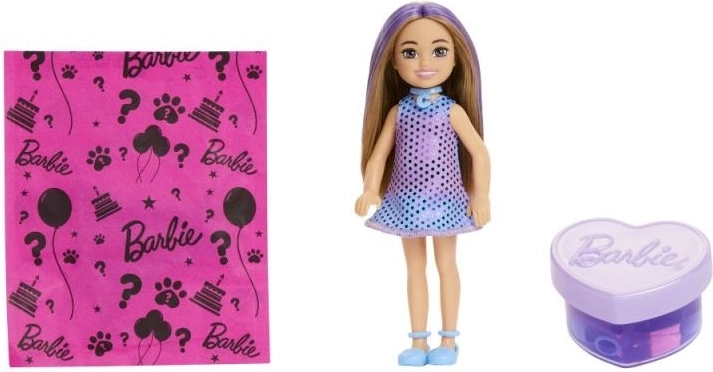 Duik in een wereld vol verrassingen met de Barbie Chelsea Party Reveal-pop. De cadeauverpakking verbergt een kleine Chelsea-pop met een stylische haarlook en partyjurk, plus een potje geïnspireerd op lippenbalsem dat Slime-gel en thematische accessoires bevat. Gewoon openen, ontdekken en spelen!
