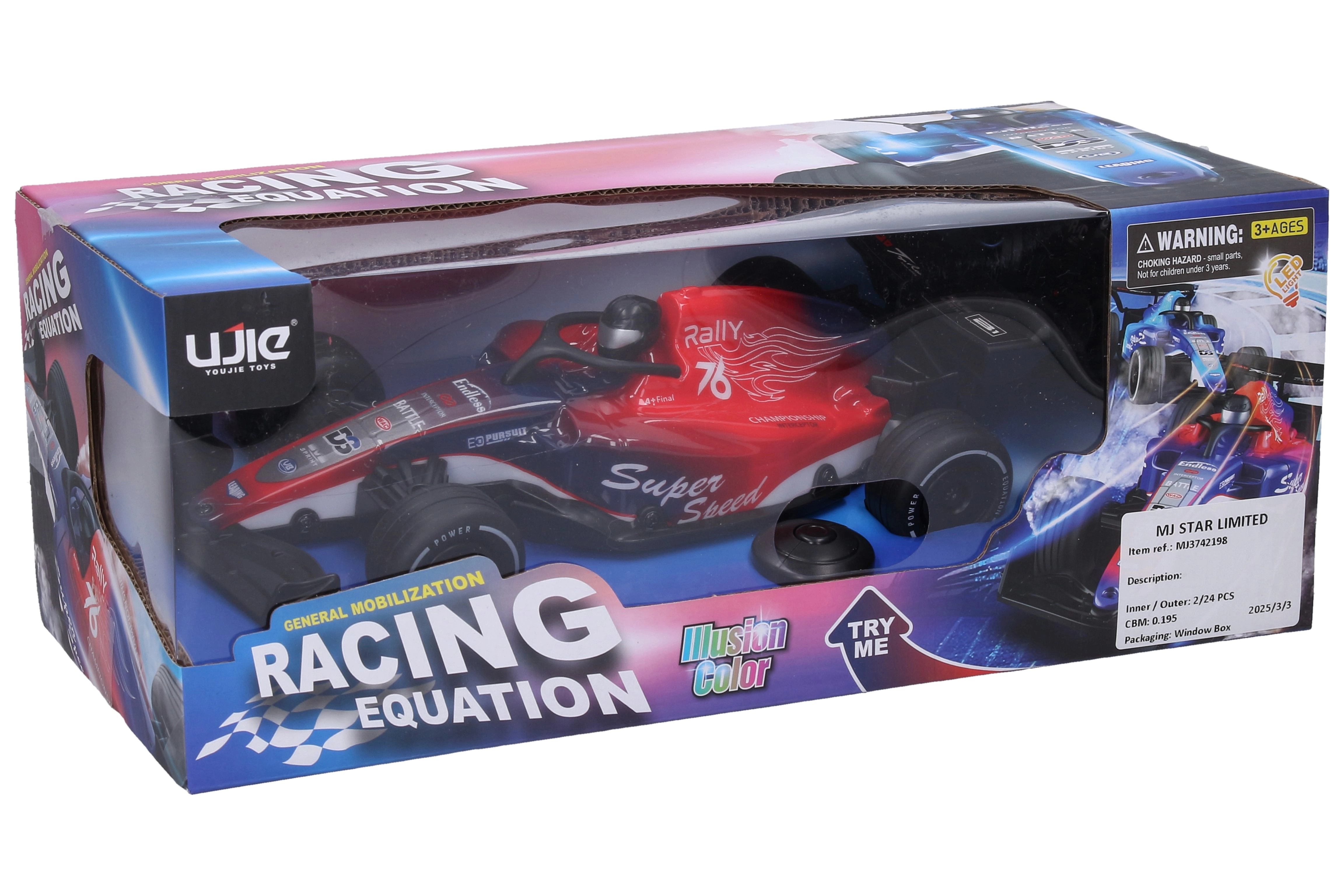 De lichtgevende RC Formule biedt een geweldige balans tussen plezier en eenvoud. De compacte afmetingen van 25,5 × 11,7 × 7,3 cm en de ON/OFF-schakelaar aan de onderzijde zorgen voor comfortabel gebruik. De verlichting van de carrosserie geeft de rit een aantrekkelijk uiterlijk, zowel binnen als buiten.