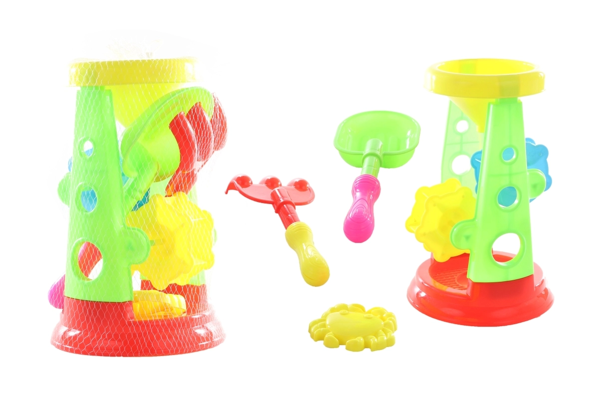 Deze kleurrijke set met zandmolen biedt kinderen urenlang creatieve pret. De werkende molen draait gemakkelijk met zand of water en stimuleert de fijne motoriek en de fantasie. Dankzij de lichte en duurzame kunststof is hij ideaal voor speelplaats, strand en tuin.