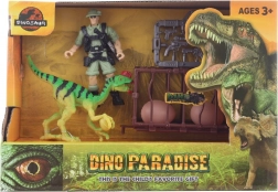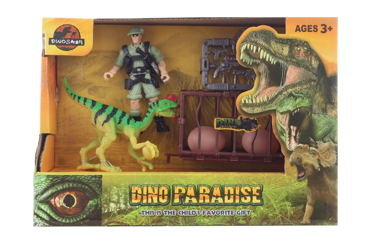 Dinosaurus, soldaat, kooi met eitjes, wapens