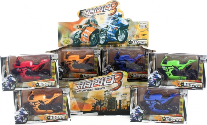 Plastic motorfiets voor kinderen vanaf 3 jaar, afmeting speelgoed ca. 11 × 7 cm, in cadeauverpakking 14 × 8,5 × 5 cm. Licht, duurzaam en ideaal voor thuis en onderweg.