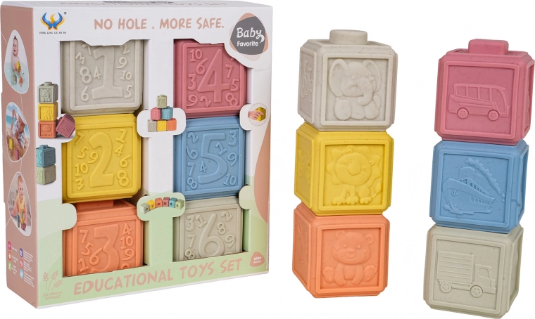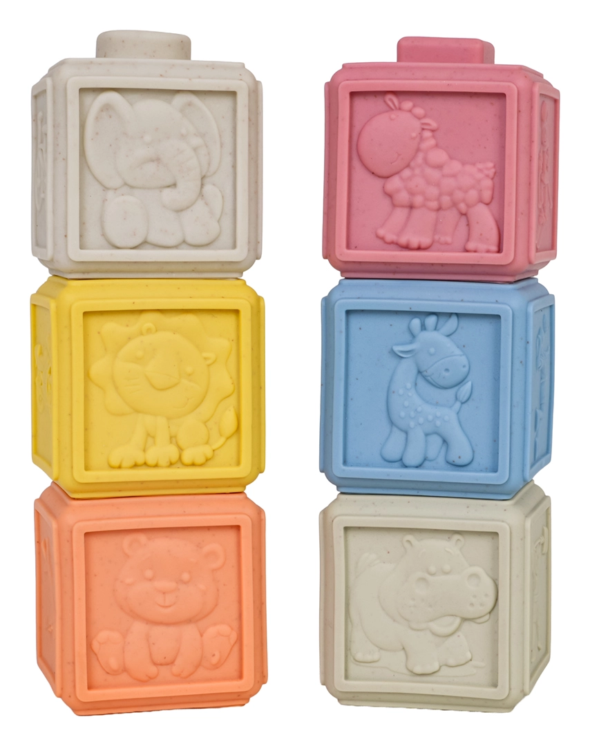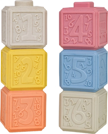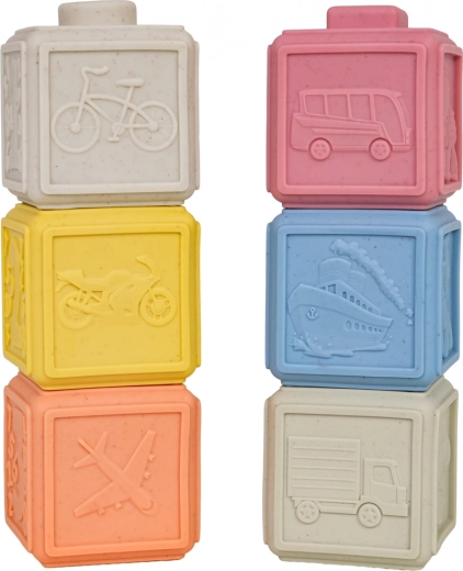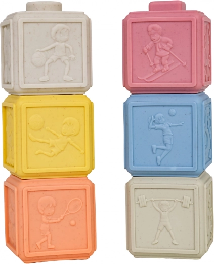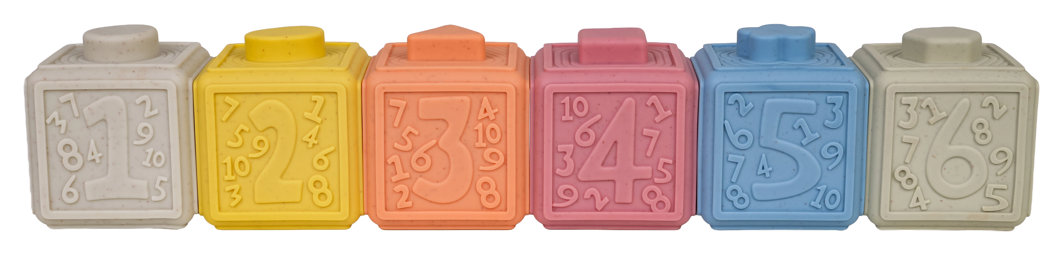 De ecologische set van 6 zachte blokken in pasteltinten biedt eindeloze speelmogelijkheden en leermomenten. Elk blokje heeft een andere oppervlaktestructuur en motieven die de fijne motoriek, oog-handcoördinatie en zintuiglijke ontwikkeling bevorderen. Dankzij het veilige, zachte materiaal zijn ze ideaal voor peuters en kunnen ze ook dienen als bijtspeeltje bij doorkomende tandjes.