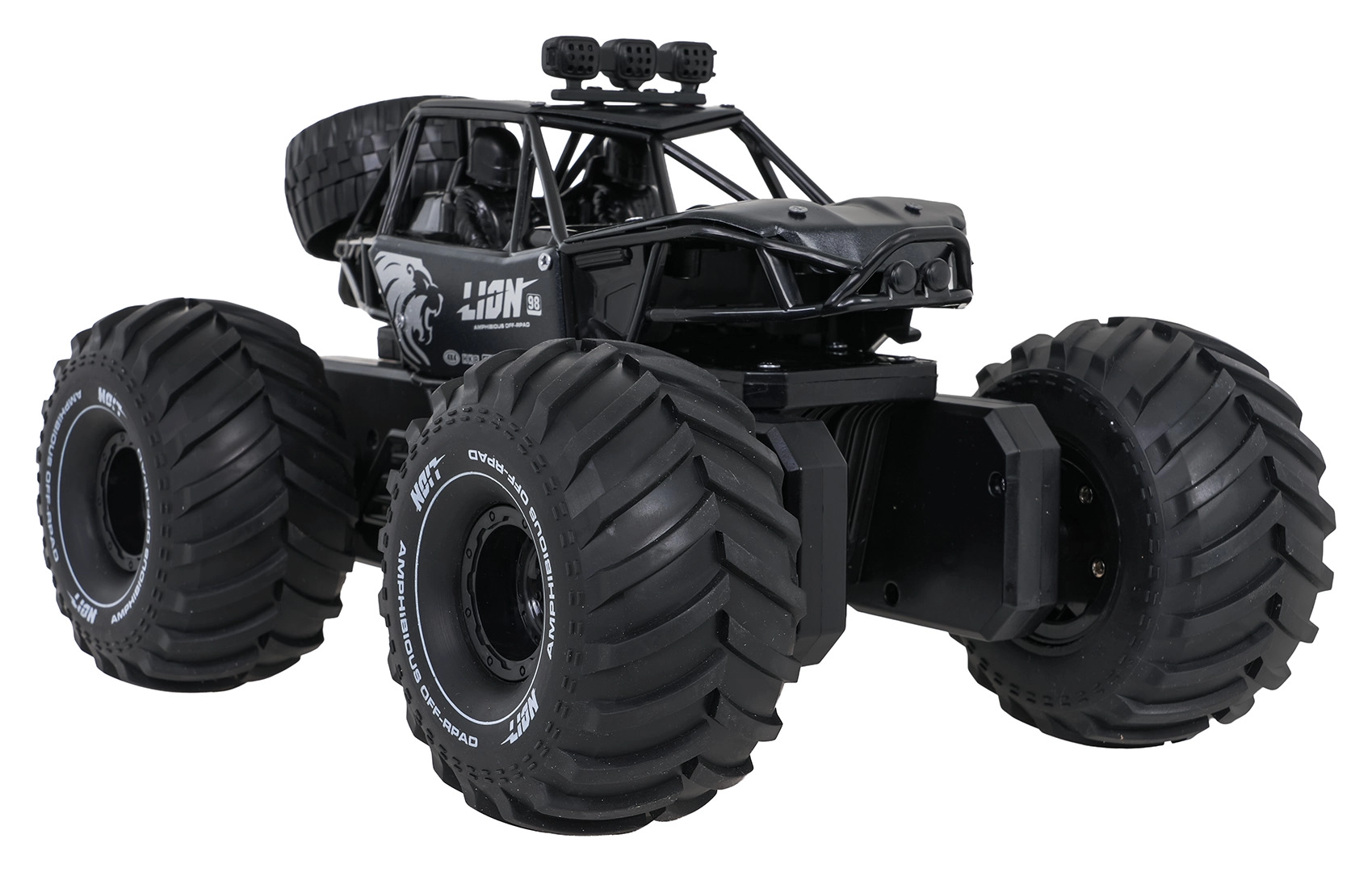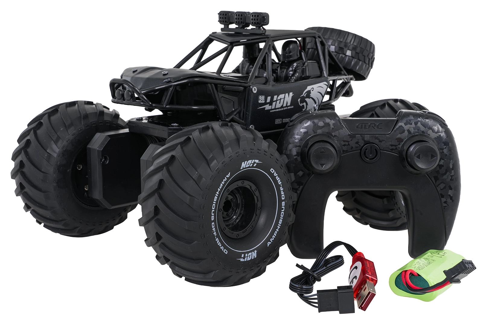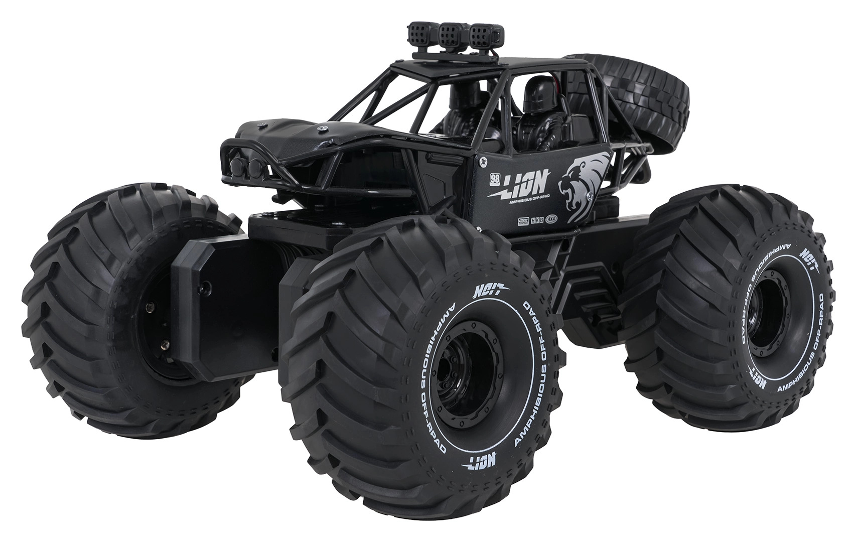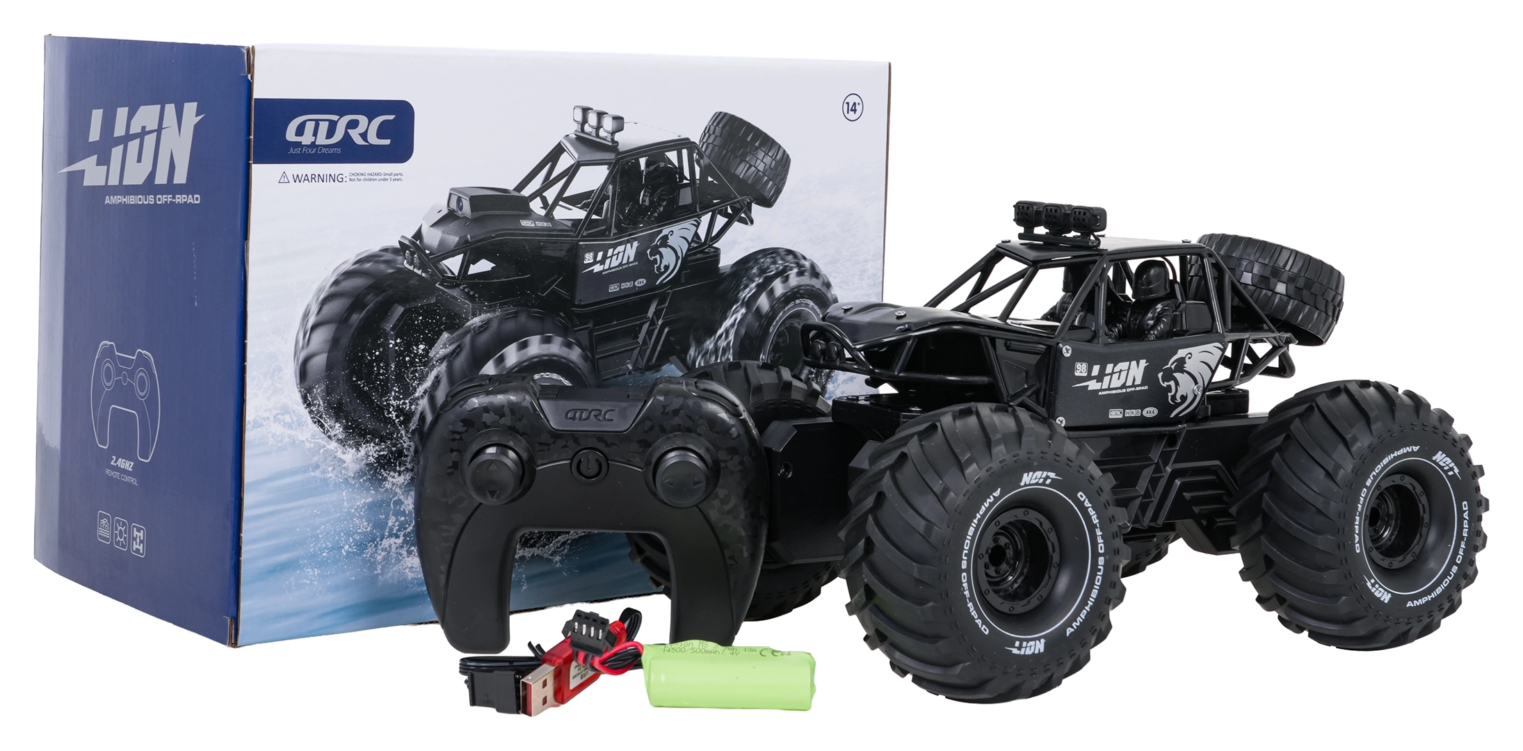 De RC terreinwagen LION in het zwart combineert een robuuste metalen carrosserie met 4x4-aandrijving voor zekerheid in het terrein. Grote, antislipbanden met een uitgesproken loopvlak kunnen grind, gras en oneffenheden aan, terwijl de antikol-constructie de auto beschermt bij botsingen. Besturing op 2,4 GHz zorgt voor een stabiel bereik zonder interferentie.