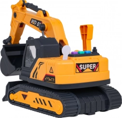 De scharnierende arm is eenvoudig te bedienen en de bak kan scheppen en kiepen – ideaal voor creatief spel en de ontwikkeling van motorische vaardigheden.