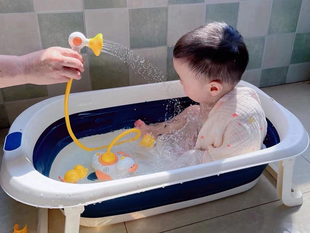 De drijvende eend werkt als een waterpomp – zodra hij op het water ligt en je op de knop drukt, begint hij water te pompen en tovert hij samen met de verwisselbare accessoires fonteintjes, verneveling en roterende effecten tevoorschijn. Kinderen kunnen kiezen uit drie kleine eendjes met verschillende waterattracties of de handdouche gebruiken met opzetstukken voor zacht afspoelen.