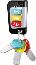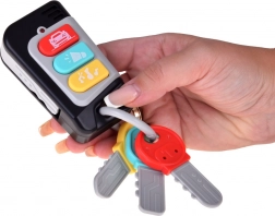 De set bevat drie bevestigde sleutels die qua kleur passen bij de knoppen op de afstandsbediening en één uitschuifbare sleutel die aan een echte autosleutel doet denken. De verschillende sleutelvormen ontwikkelen de tastzin, vormherkenning en aandacht. Het speelgoed ondersteunt uitstekend imitatiespel, zelfstandigheid en oog-handcoördinatie.
