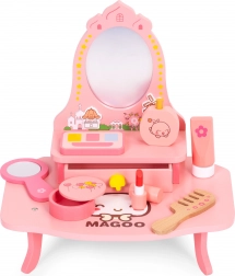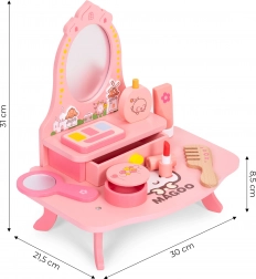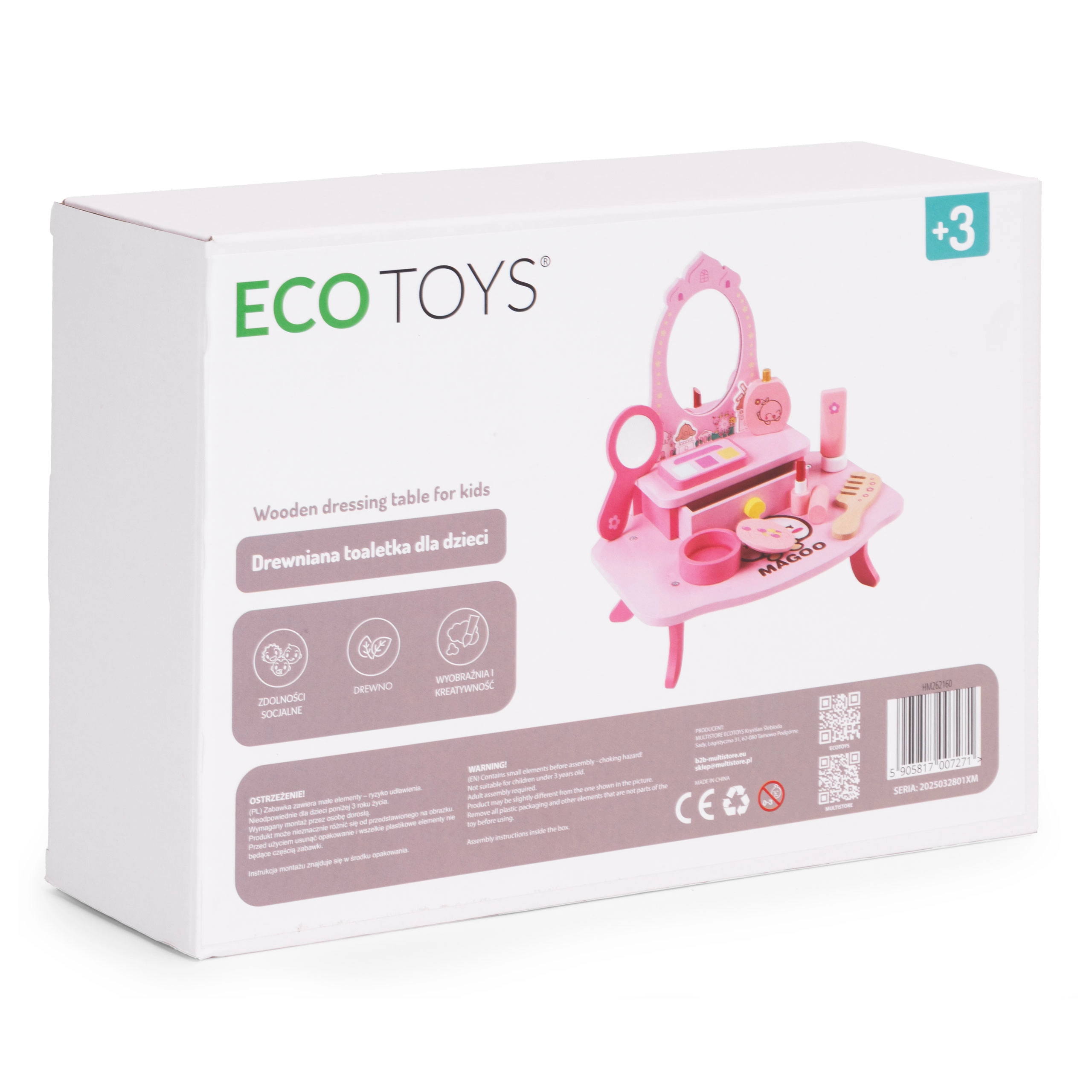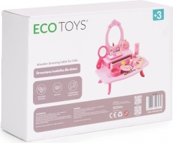 Geef kinderen hun eigen creatieve hoekje – het ECOTOYS-kaptafeltje in zacht roze past prachtig in de kinderkamer en nodigt uit tot fantasiespel. Kinderen oefenen op een veilige manier dagelijkse rituelen, leren orde houden dankzij de lade en ontwikkelen tegelijk manuele vaardigheden en zelfvertrouwen.