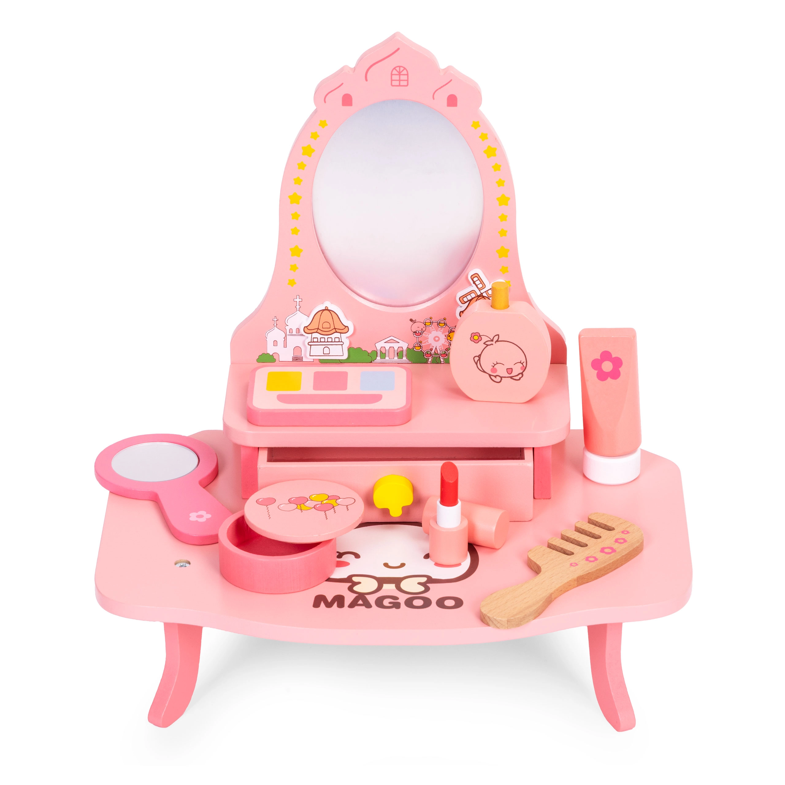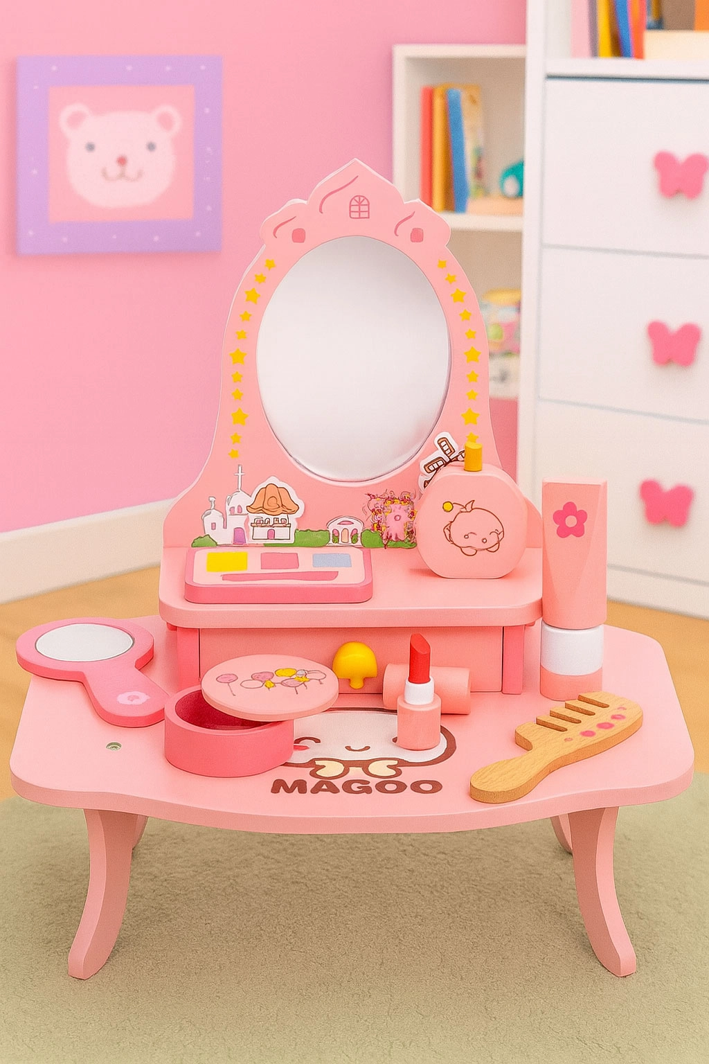 De decoratieve spiegel met subtiele details motiveert kinderen tot creatief “opmaken” en haarstyling, waarbij verbeeldingskracht en zelfexpressie worden ontwikkeld.