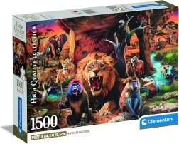 Geniet van ontspanning met de hoogwaardige Clementoni puzzel met het motief Bijeenkomst van dieren. De set bevat 1500 stukjes en vormt na het leggen een afbeelding van 84,5 × 59,5 cm – ideaal voor liefhebbers van details en rustige momenten.