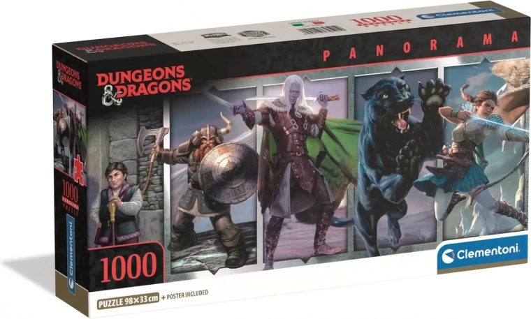 Geniet van uren plezier met de panoramische puzzel van CLEMENTONI, geïnspireerd op de wereld van DUNGEONS & DRAGONS. Hoogwaardige druk, precieze uitsnijdingen en 1000 stukjes creëren een gedetailleerd beeld van ca. 98 × 33 cm – ideaal voor fantasyliefhebbers en verzamelaars.
