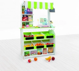 Ontdek de magie van winkeltje spelen met deze houten set, die een realistische ervaring van kopen en verkopen biedt. De robuuste constructie van natuurlijk hout garandeert een lange levensduur en veilig spel, terwijl het elegante design elke kinderkamer verfraait.